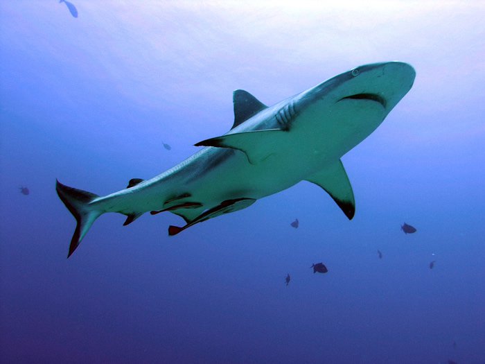 reef, sfilando maestosi in ordine sparso vicino ed in mezzo ai sub sospesi nel blù, quasi volessero farsi ammirare per la loro possente eleganza ; frequentissimi gli incontri con squali grigi, squali tigre, mante, barracuda, carangidi, tonni, aquile di mare…